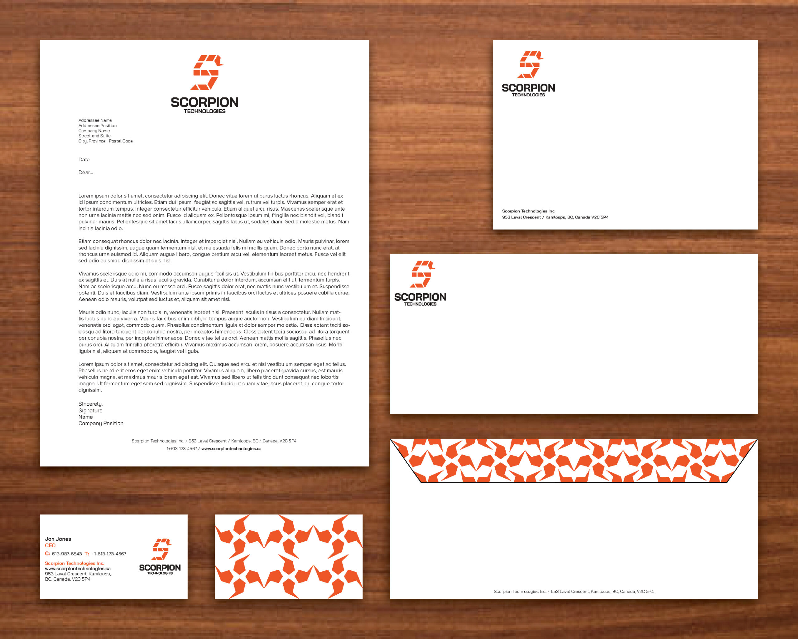 This piece contains a custom logo design and different stationery pieces with the logo and branding applied. The custom logo was created to replace the old logo for the company Scorpion Technologies because the old design had a lot of room for improvement. For the new logo I decided to combine the design of a scorpion as well as the letter S from the company’s name. To do this I broke the design into different segments due to how a scorpion’s body is segmented and I then placed the segments so they resembled the letter S. I decided to have the head of the scorpion at the base of the design and the stinger at the top. Finally I colored the logo design a hot orange color to help it pop out and also because that color fit well with the brand identity. Finally I added the logotype underneath the design and I chose to use a sharp but clean typeface for it called Bai Jamjuree because it really fit with the brand identity and with it being a sharper typeface also matched well with the logo. After designing the logo and the accompanying logotype I then applied the design to four different stationery pieces including a business card, envelope, letterhead and mailing label and I made sure to apply the logo design and similar branding across all four stationery pieces to make it look they were all part of a set.